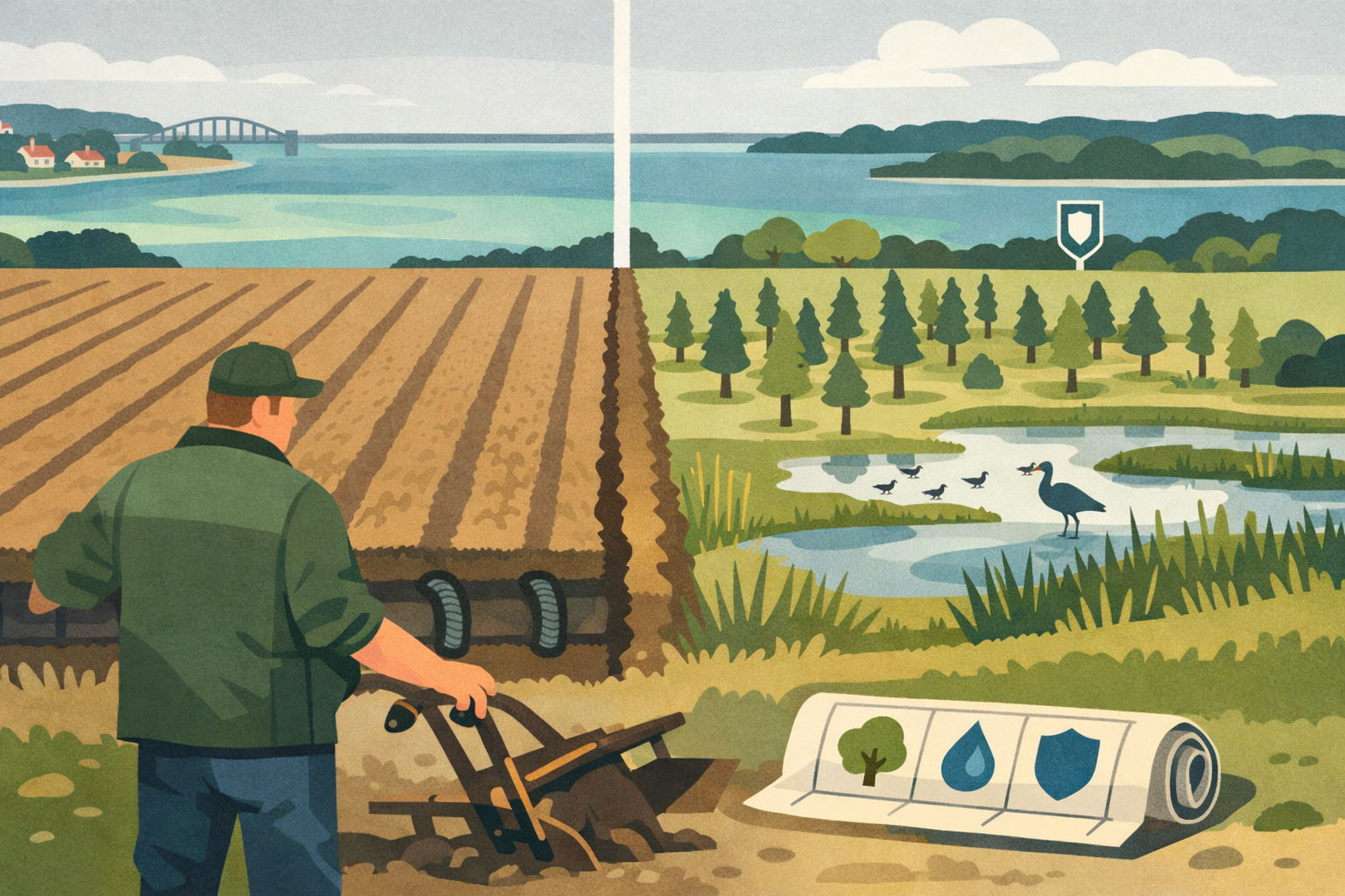 Byrådet har principgodkendt en omfattende plan for kommunens åbne land. Nye skove og vådområder skal sikre rent vand og mere natur, men projekterne afhænger af frivillige aftaler med lodsejerne.
