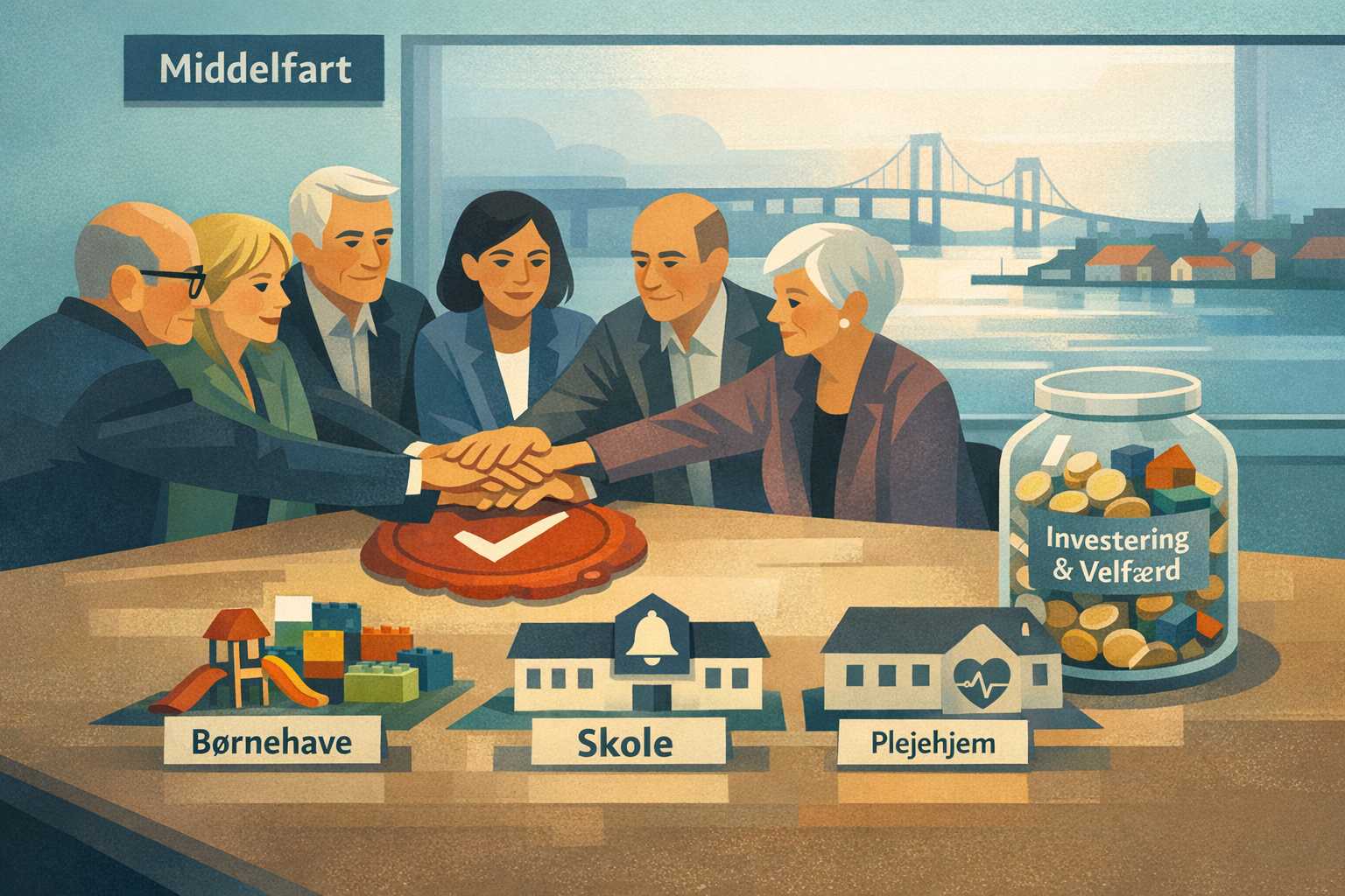 Middelfart Byråd har godkendt budgettet for 2026-2029, der sikrer stabilitet i velfærden og fortsatte store investeringer i blandt andet dagtilbud, skoler og plejehjem. Budgettet bygger på uændrede skattesatser og en bred politisk aftale.