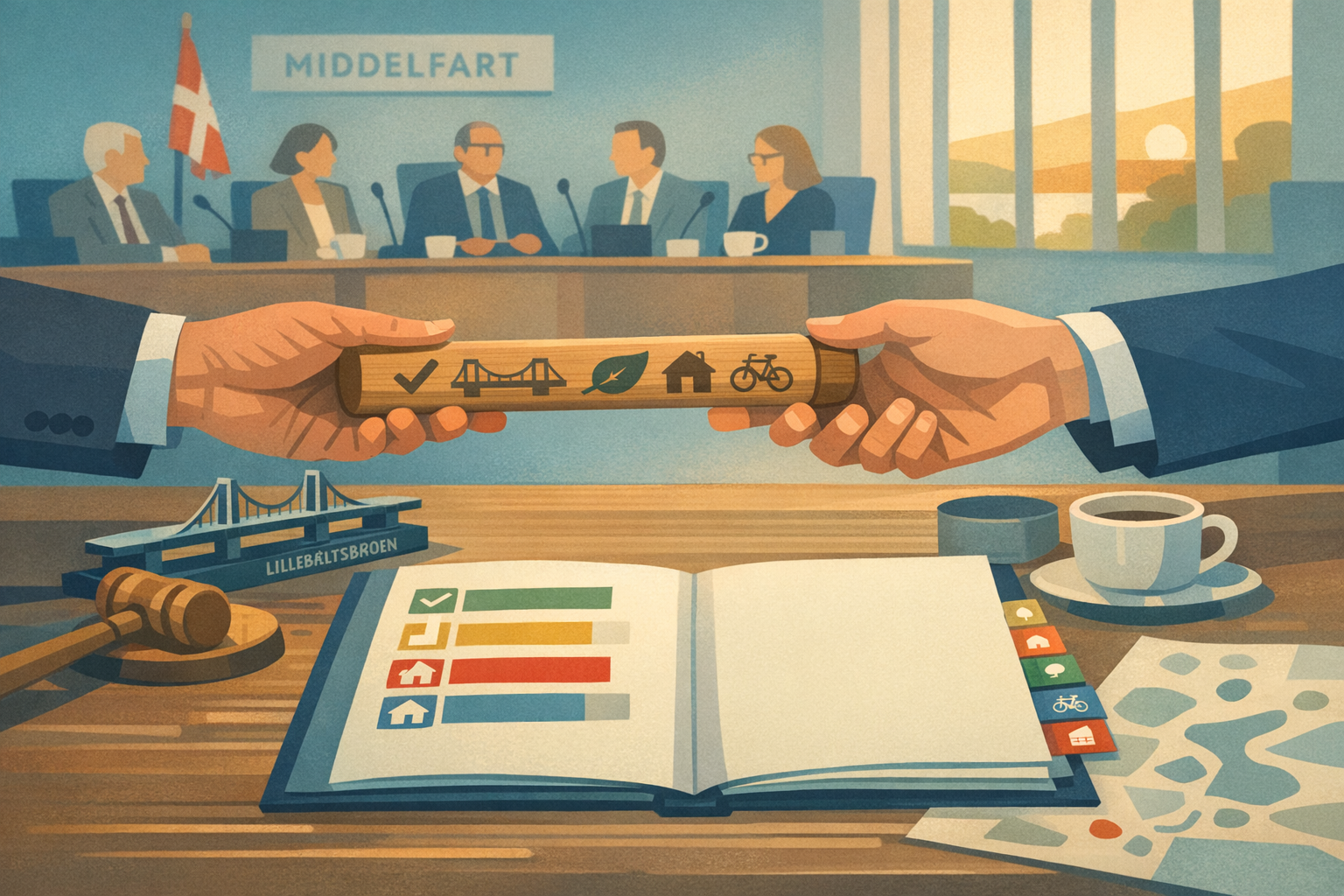 Før det nuværende byråd træder af, har de samlet status på periodens politiske mål og anbefalinger. En folder er nu klar til at guide det kommende byråd, der tiltræder i 2026, og sikre kontinuitet i arbejdet for Middelfarts borgere.